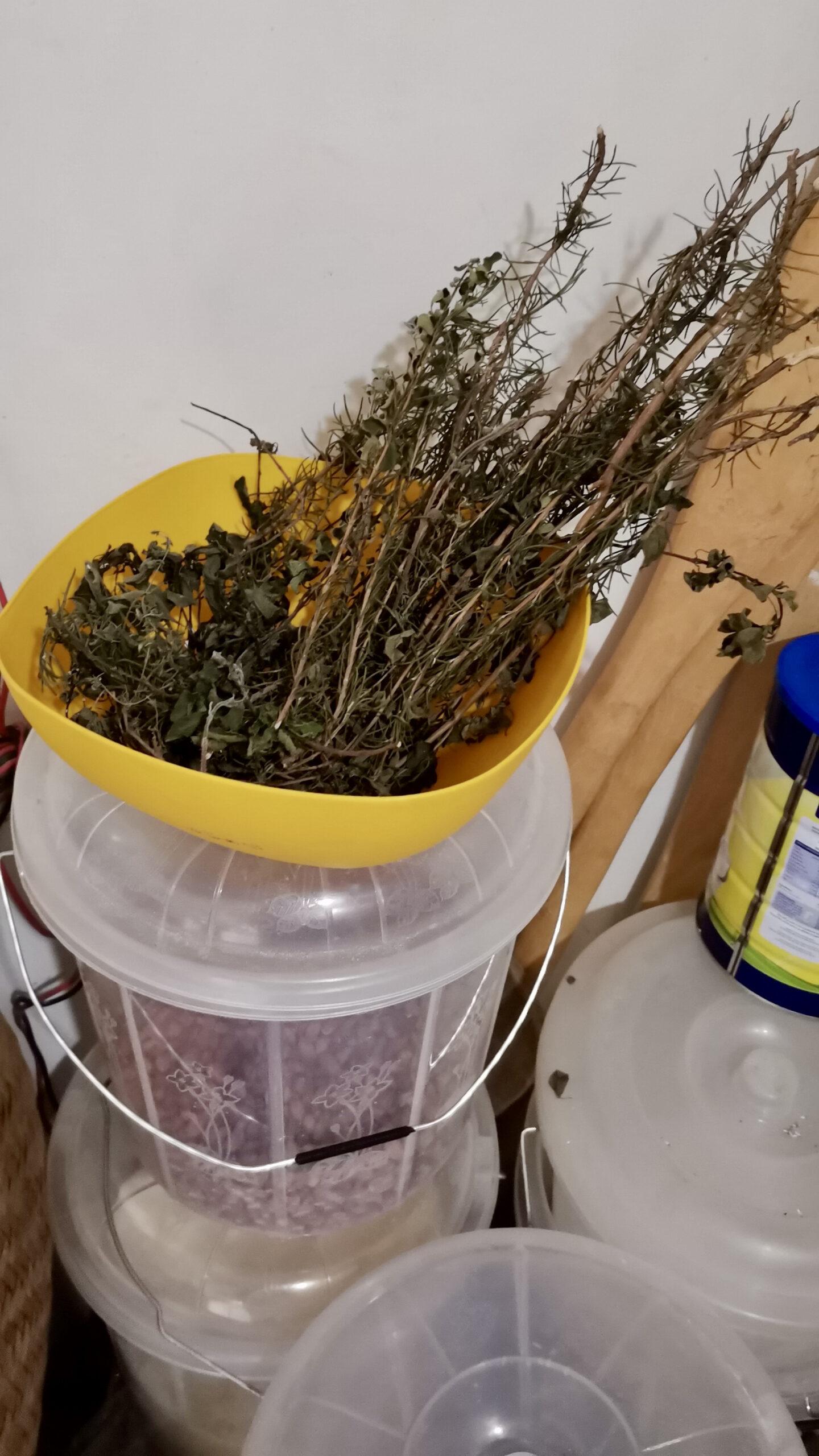 Photograph of friend rosemary sprigs in a yellow bowl